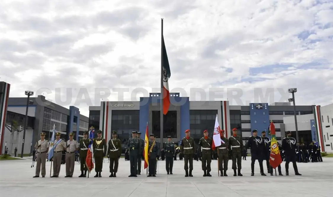 Durante la ceremonia realizada en la Escuela Militar de Ingenieros, el comandante del contingente de las delegaciones extranjeras, Daniel Chávez Razo, recibió a los visitantes y agradeció su estancia en México, para estrechar los lazos de amistad entre las naciones.