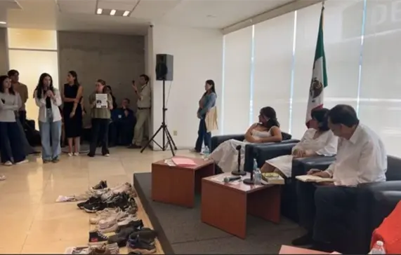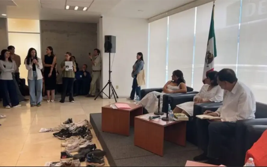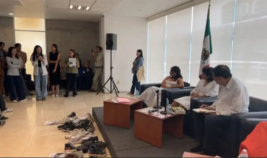 Al acudir a esa institución para dictar la conferencia magistral “Las reformas desde la izquierda” y sostener un intercambio de opiniones con la comunidad estudiantil, el legislador de Morena fue recibido con pancartas y zapatos que estudiantes colocaron frente al presídium. “Estos no son zapatos de desaparecidos”, señaló de inmediato el senador, lo que encendió los ánimos.
