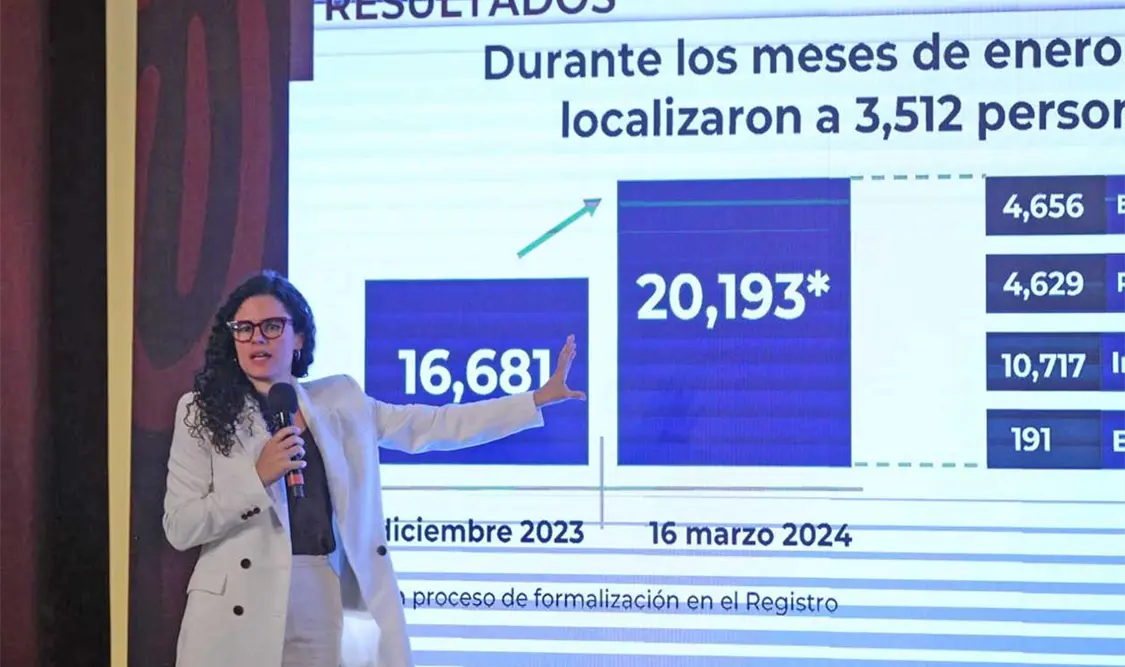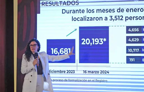 Abundó que en el reporte que se presentó el 14 de diciembre se informó la localización de 16 mil 681 personas y de enero a marzo de este año se localizó a tres mil 512 más.