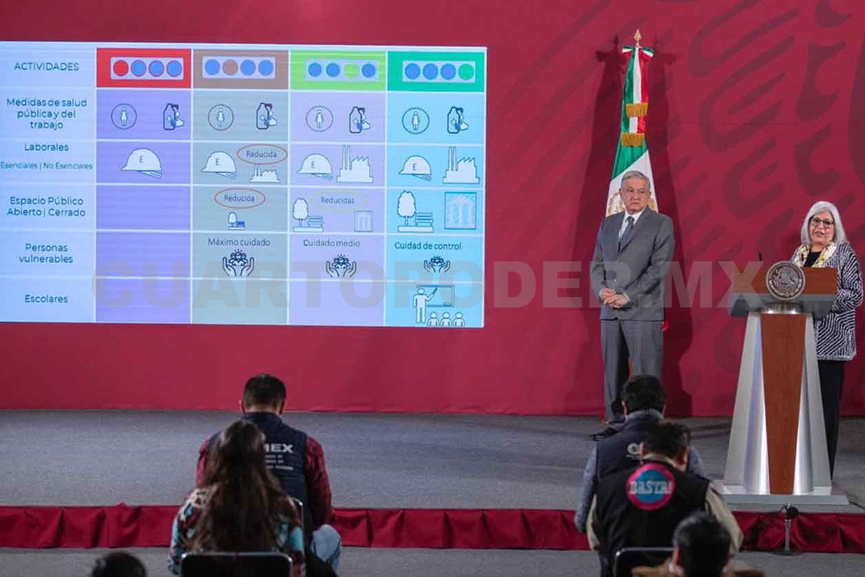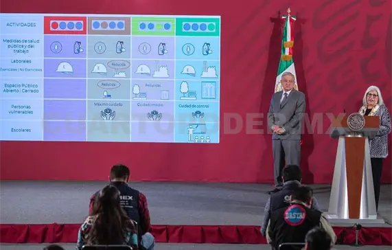 El plan para el regreso a la nueva normalidad comienza a partir del 1 de junio, donde permanecerán las medidas sanitarias, pero contempla la reapertura de actividades esenciales como la minería, la construcción y fabricación de equipo de transporte, por medio de un semáforo de determinará la apertura de actividades.