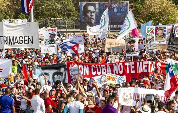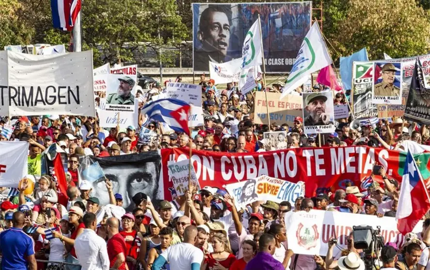 Al grito de “¡Cuba sí, bloqueo no!”, también integrantes del Movimiento Mexicano de Solidaridad con Cuba, entre otras organizaciones, urgieron a “tumbar el bloqueo”.