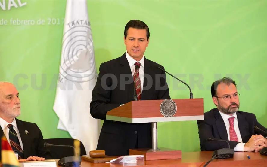 Acompañado por varios cancilleres de la región, estimó que llegó el momento de dar paso al desarme y ofreció toda la colaboración de México en las futuras negociaciones para liberar al mundo de las armas nucleares, superando la lógica de la guerra fría.