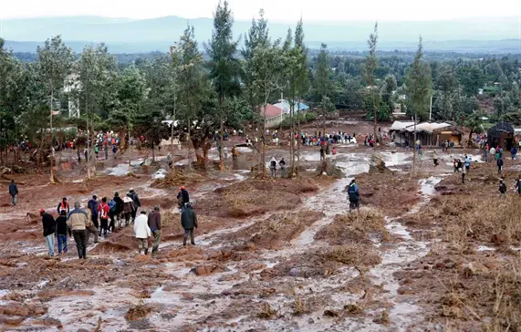 Los diques de la presa Patel, en la localidad de Solai, reventaron la noche del miércoles como consecuencia de la presión y el agua y el barro se extendieron por un radio de casi dos kilómetros, llevándose a decenas de personas junto con sus viviendas.