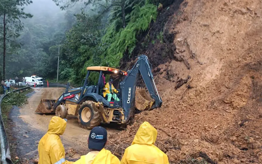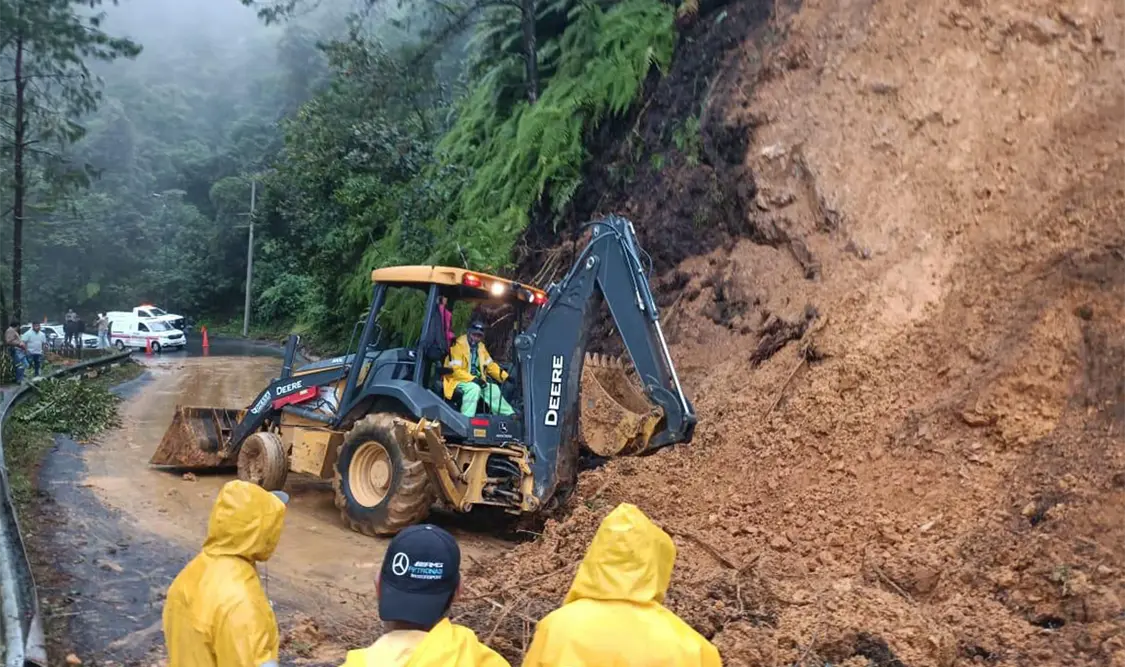 En Querétaro, las lluvias causaron siete interrupciones en las carreteras 120 y 69, donde se ha retirado más de 13 mil 600 metros cúbicos de material.