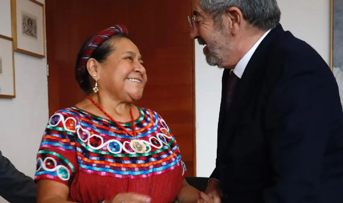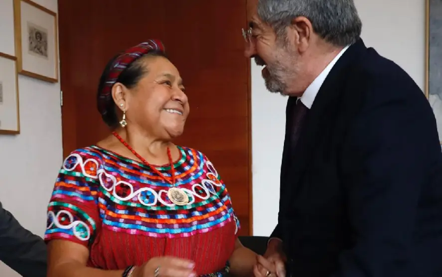 En la Cancillería, el titular de la Secretaría de Relaciones Exteriores (SRE) se reunió con Menchú, a quien reconoció su lucha en la defensa de los derechos humanos.