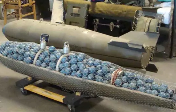 Las bombas de racimo contienen varias decenas de pequeñas bombas que se dispersan en un amplio perímetro y algunas de ellas no explotan en el momento del lanzamiento, lo que puede comportar que se conviertan en minas antipersona.