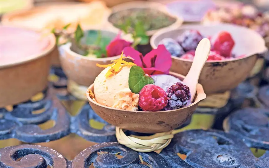 Los helados se sirven en jícaras de calabaza, que pueden ser llevadas por sus clientes, lo que permite que la marca compre periódicamente a las productoras. “Entre más jícaras vendemos, más les compramos a ellas”, sentencia. Además tienen otros sabores como jamaica con poleo y café.