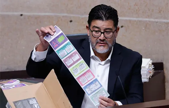 “El proyecto llega a la conclusión de la existencia de los acordeones, aquí están, no podemos negar que hay; estos, que no sabemos de dónde salieron, si estuvieron el día de la elección, si no, si los utilizó la gente, porque estos acordeones están nuevos, no están manipulados, o sea, parece que no están usados”, señaló.