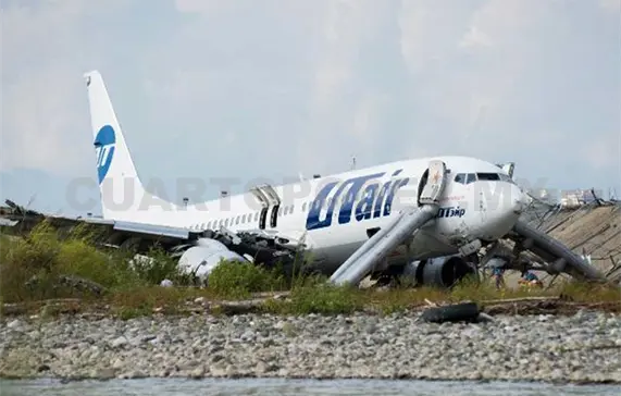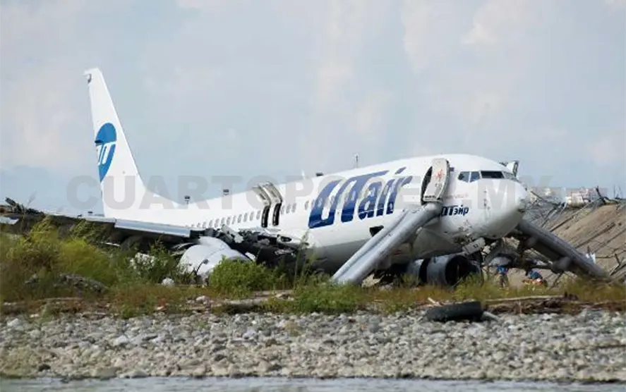 Tras el aterrizaje, el avión Boeing 737, con 164 pasajeros y seis miembros de la tripulación a bordo, salió de la pista, se deslizó en el lecho de un río a causa de lo cual se colapsaron los trenes de aterrizaje y una ala, así como se incendió el motor izquierdo, indicó la compañía Utair.