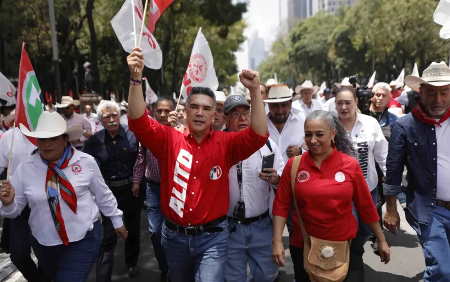 Militantes del PRI en apoyo a Alejandro Moreno Cárdenas, presidente nacional del partido tricolor, marcharon en la Ciudad de México (CDMX) en un intento por demostrar su apoyo al presidente del partido.