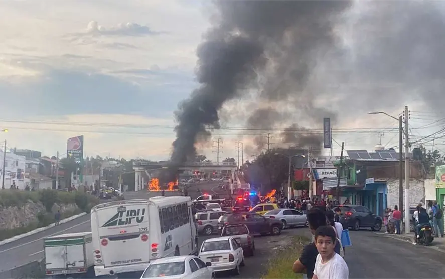 Alrededor de las 20:30 horas el gobernador del Estado, Enrique Alfaro, publicó un mensaje en redes sociales informando que los bloqueos eran una reacción a un enfrentamiento entre delincuentes y fuerzas federales en los límites de los municipios de Ixtlahuacán del Río y Cuquío, a unos 50 kilómetros de la zona Metropolitana de Guadalajara.