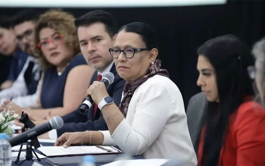 Al inicio de la reunión, realizado en un hotel de la Ciudad de México, la secretaria de Gobernación, Rosa Icela Rodríguez, saludó personalmente a cada una de las madres y padres que conforman el colectivo.