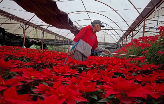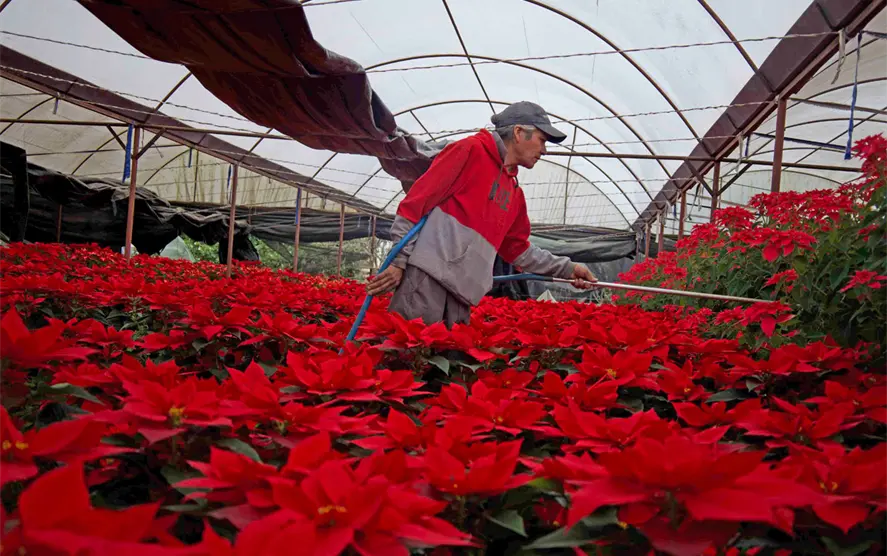“Desde abril hacemos un calendario conforme a los tamaños de maceta, de planta y de las condiciones que tiene cada una. El cambio climático hizo a este negocio de mucho riesgo porque nos exponemos a las nuevas condiciones, enfermedades y también la contaminación de las aguas, pero nosotros monitoreamos a las nochebuenas desde que son bebés hasta que son adultas”, dijo.