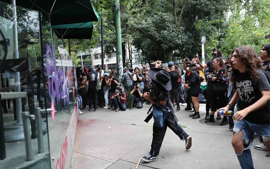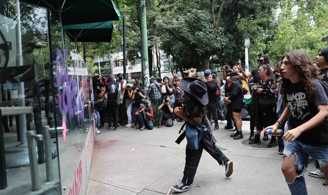 Durante la protesta, algunos manifestantes arremetieron contra un Starbucks ubicado en la esquina de Sonora y Ámsterdam, en la colonia Hipódromo.