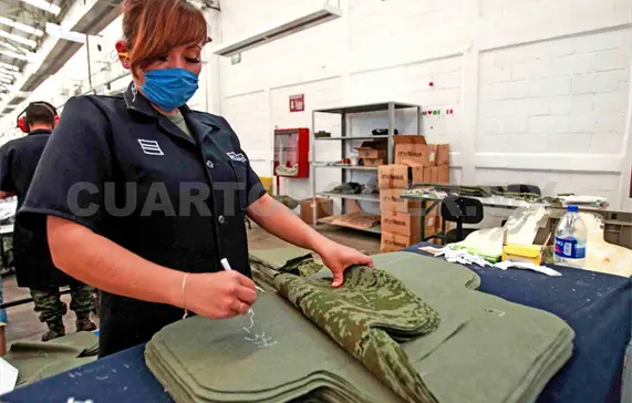 Este año la producción será de 5 mil 500 chalecos color selva, 3 mil 100 color azul aéreo y 550 color desierto para la secretaría, pero el complejo de 11 fábricas de la Sedena va a producir 4 millones de artículos, entre uniformes, playeras, botas, cascos, chalecos y gabinetes.