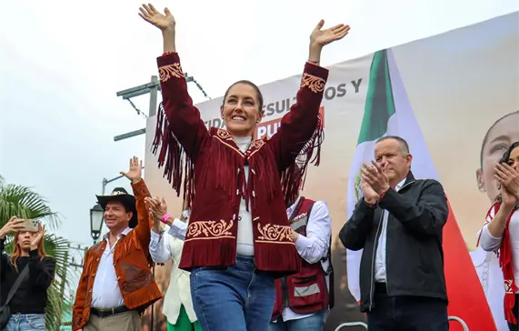 A unos 800 metros de la frontera con Estados Unidos, donde pasan miles de personas al día, en la Plaza Hidalgo, Sheinbaum Pardo celebró la suspensión de la ley migratoria de Texas, ya que permitía que cualquier policía detuviera a una persona por su aspecto para pedirle su documentación y deportarla.