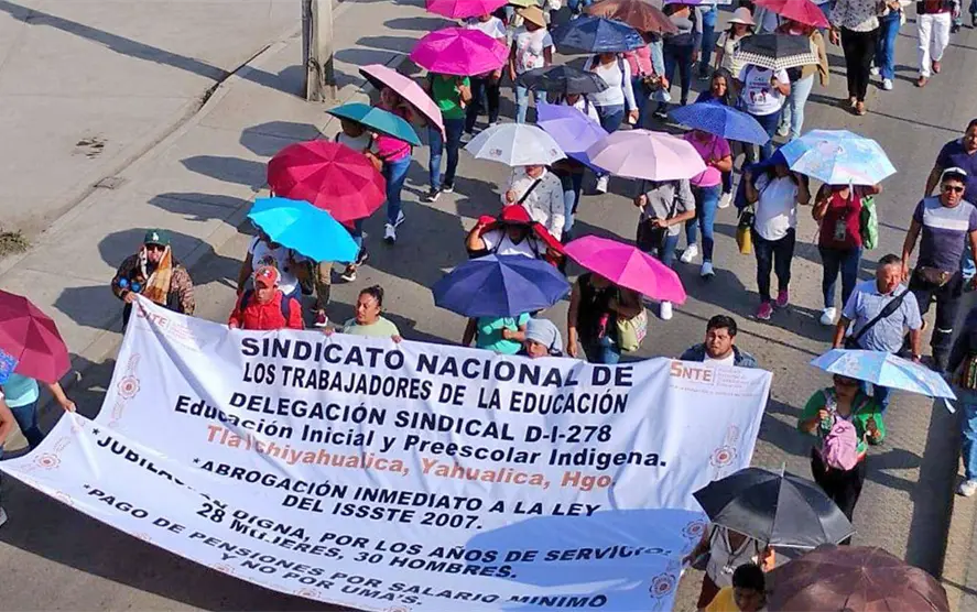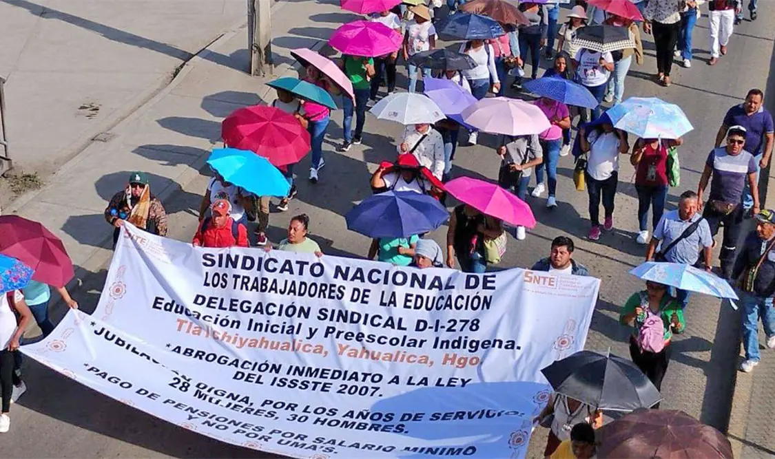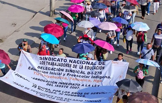En Hidalgo, profesores de diversas zonas han salido a las calles para denunciar que su sindicato los ha traicionado. En esta ocasión, advirtieron que continuarán con sus protestas, ya que las nuevas condiciones para su jubilación los afectan directamente, pues ahora se les exige cumplir 60 años de edad, lo que implica un desgaste físico y mental en su labor docente.