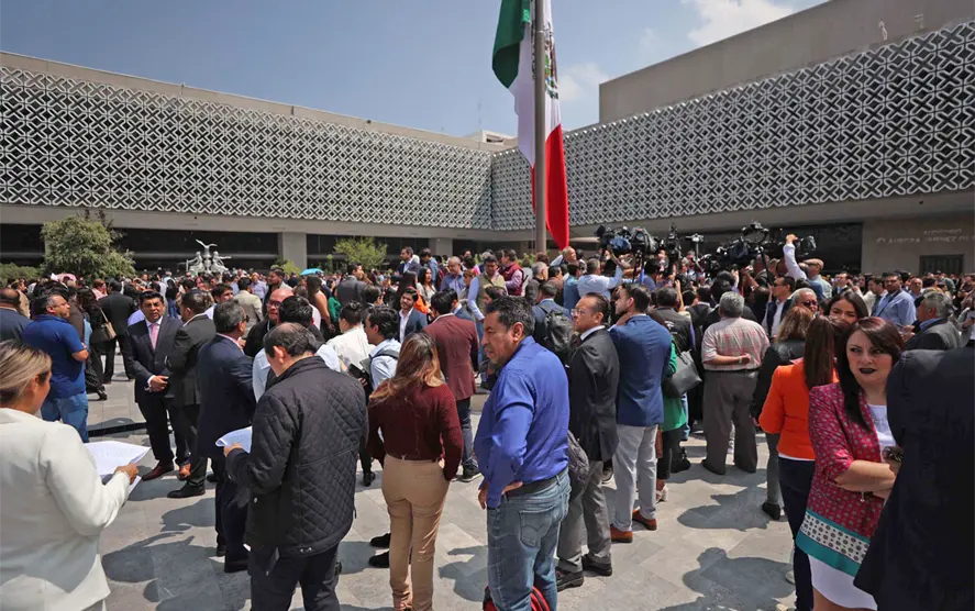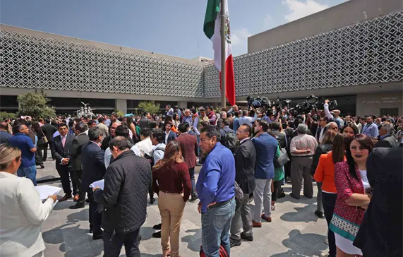 En Palacio de Gobierno de Morelos, los trabajadores del Poder Ejecutivo y otras dependencias desalojaron las oficinas y se concentraron en la explanada de Plaza de Armas, identificado como sitio seguro para resguardarse.
