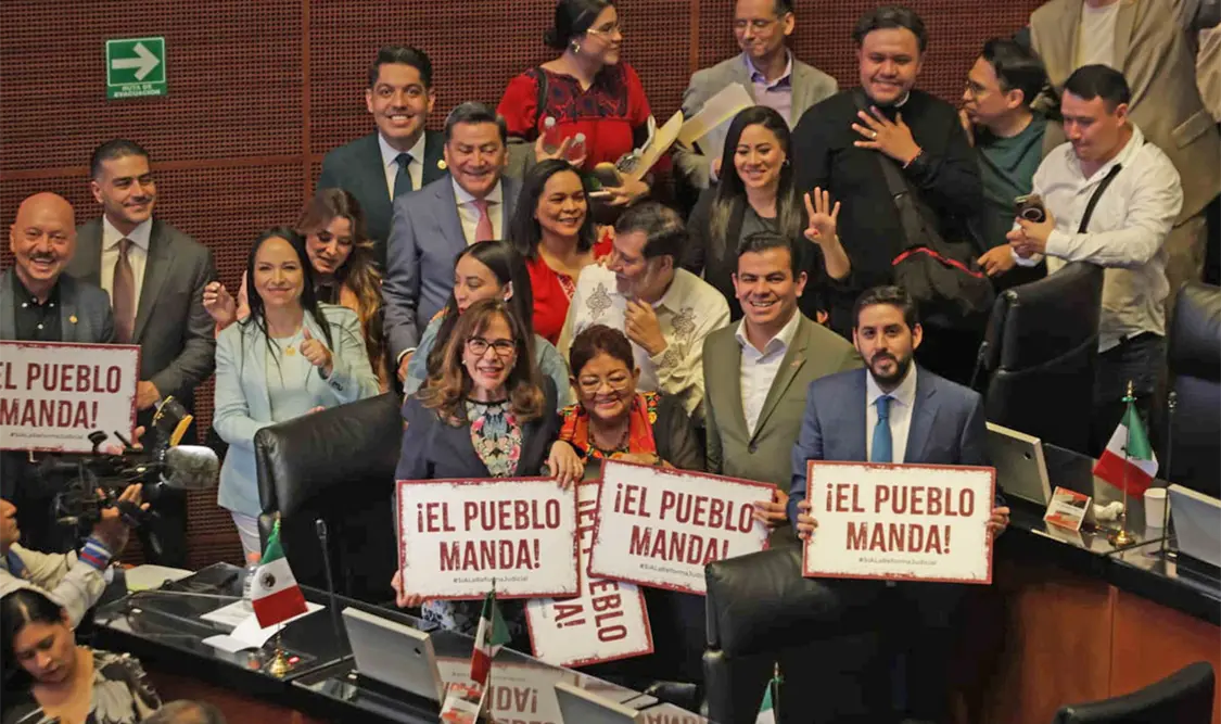 Sin la presencia de las bancadas del PAN, PRI y Movimiento Ciudadano, senadores oficialistas realizaron la declaratoria constitucional de la reforma judicial, luego de que la mayoría de los congresos estatales la ratificaron.