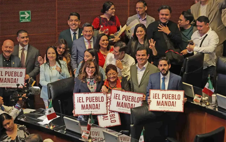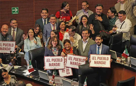 “El Congreso de la Unión, en uso de la facultad que le confiere el artículo 135 de la Constitución política de los Estados Unidos Mexicanos y previa aprobación de la mayoría de las honorables legislaturas de los estados y de la Ciudad de México, declara reformadas, adicionadas y derogadas diversas disposiciones de la Constitución Política de los Estados Unidos Mexicanos en materia de reforma del Poder Judicial”, dijo el diputado Sergio Gutiérrez Luna, presidente en turno de la Mesa Directiva.