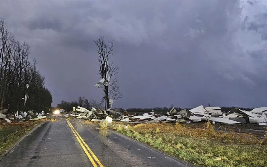 El servicio meteorológico informó que postes de electricidad se partieron y cayeron cerca de las localidades de Jena, Cheneyville y Donaldsonville, en Luisiana.