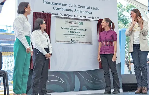Además, Sheinbaum Pardo dijo que la Central Ciclo Combinado Salamanca aportará 927 megawatts (MW) al Sistema Eléctrico Nacional, en beneficio de cinco millones de personas en la zona del Bajío. Además, anunció que próximamente esta empresa pública del Estado volverá a estar integrada verticalmente y se eliminarán las subsidiarias.