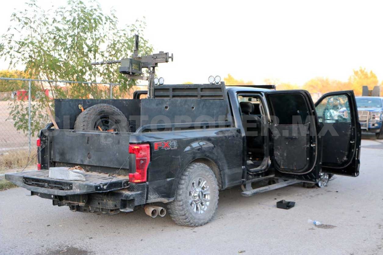 Dijo que se aseguraron 14 vehículos, algunos con las siglas del grupo delictivo, los cuales estaban artillados, inclusive dos de ellos con armas Barret. También se aseguraron 14 armas largas que fueron encontradas dentro de los automóviles y numerosos cartuchos.
