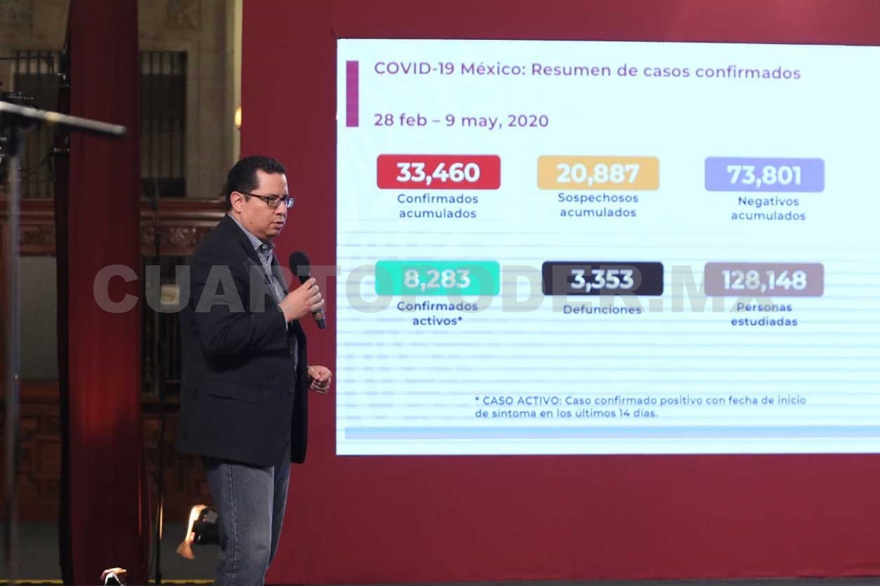 Este sábado, autoridades de la Secretaría de Salud informaron que suman tres mil 353 muertes, ocho mil 283 casos confirmados activos y 33 mil 460 confirmados acumulados por Covid-19 en México.