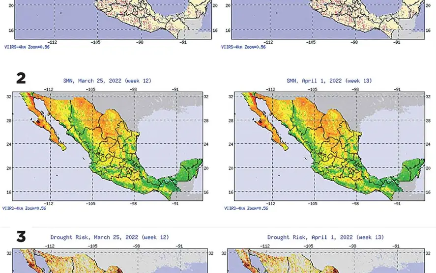 Este mismo miércoles 6, por la tarde noche, comenzará a ingresar el frente frío número 41 o 42 en los estados fronterizos del norte, recorriendo de jueves a viernes el oriente, centro y sureste del país favoreciendo nubosidad con lluvias/tormentas del 7 al 10 de abril, principalmente en Hidalgo, Estado de México, Ciudad de México, Morelos, Puebla, Tlaxcala, Veracruz, Oaxaca, Tabasco, Chiapas, Campeche, Yucatán y Quintana Roo.