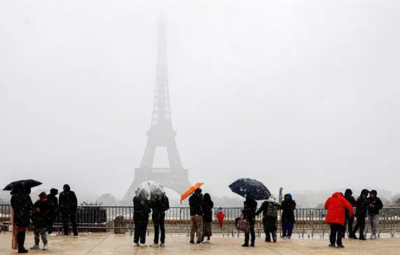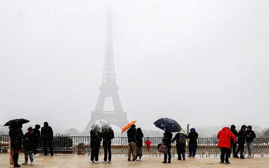 El temporal de nieve y viento que ha atravesado Francia este jueves ha provocado la anulación del 10 % de los vuelos del aeropuerto de París Roissy-Charles-de-Gaulle, retrasos en trenes y carreteras y el cierre temporal de la torre Eiffel, además de dejar 235 mil hogares sin electricidad. Cortesía