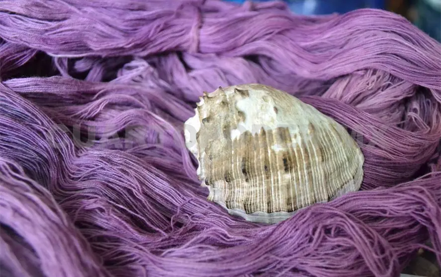 Esta antigua técnica consiste en extraer la tinta del molusco y colocarla sobre el hilo, que cuando recibe los rayos del sol se transforma en púrpura, color que identifica a los indígenas de la costa oaxaqueña.