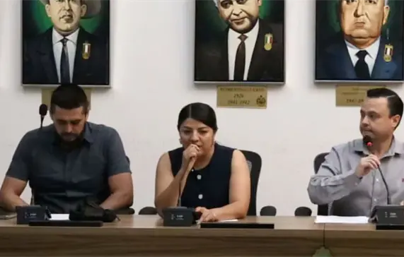 Durante la sesión extraordinaria de cabildo realizada la noche del domingo, las regidoras Alondra Romero (PRI), Evelyn Castañeda (independiente) y Crisol Bañuelos (MC) votaron en contra, mientras que la morenista Luz Elena Aguirre, quien denunció al exalcalde por violencia política de género junto con Castañeda y Romero, decidió abstenerse.