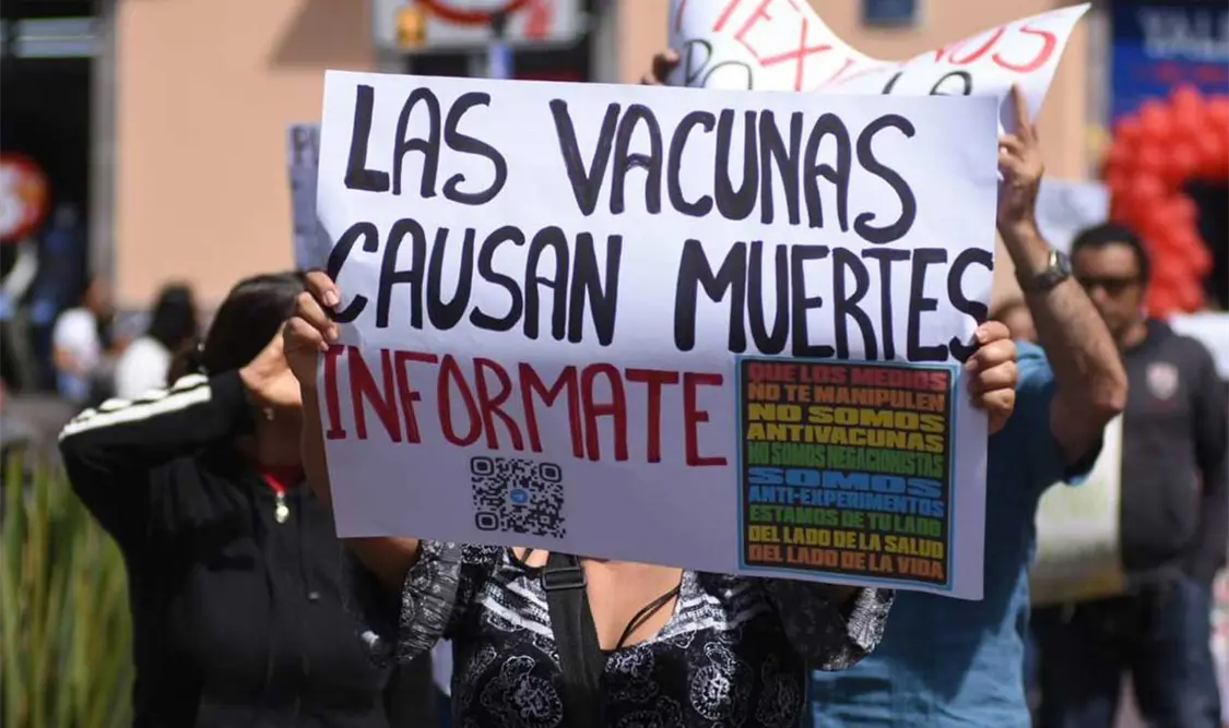 “La vacuna está catalogada como de emergencia, señores, no inmuniza ni garantiza absolutamente nada. Primero pasamos a una vacuna, luego a otra, ahora son tres. ¿Van a ser cuatro o cinco?”, apuntó Óscar Jared Guerrero, quien encabezó la protesta.