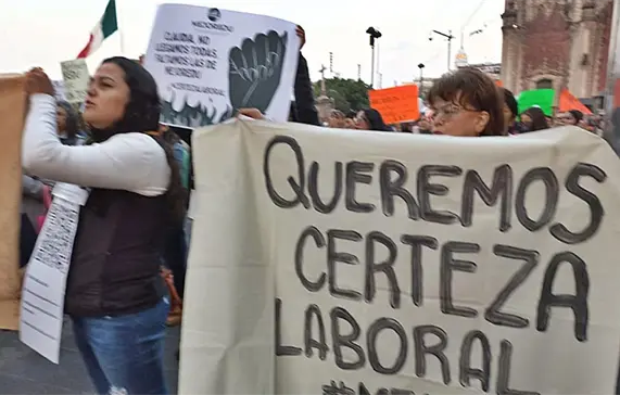 Los trabajadores de la Mejoredu dieron a conocer su pliego petitorio en el que exigen una mesa de diálogo con la SEP, que no haya despidos arbitrarios ni represalias.
