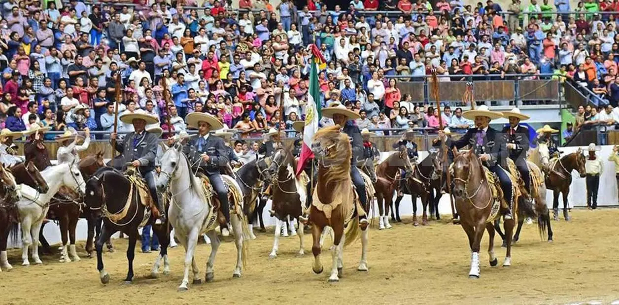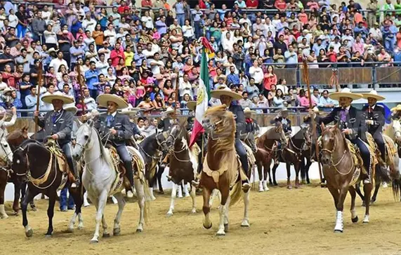 Debajo de su sombrero galoneado color blanco, los ojos y sonrisa seductora del charro jalisciense conquistan y arrancan suspiros a propios y extraños, los cuales, ya de por sí, se encuentran fascinados por la imponente presencia que le confiere el traje color negro de botonadura de plata.