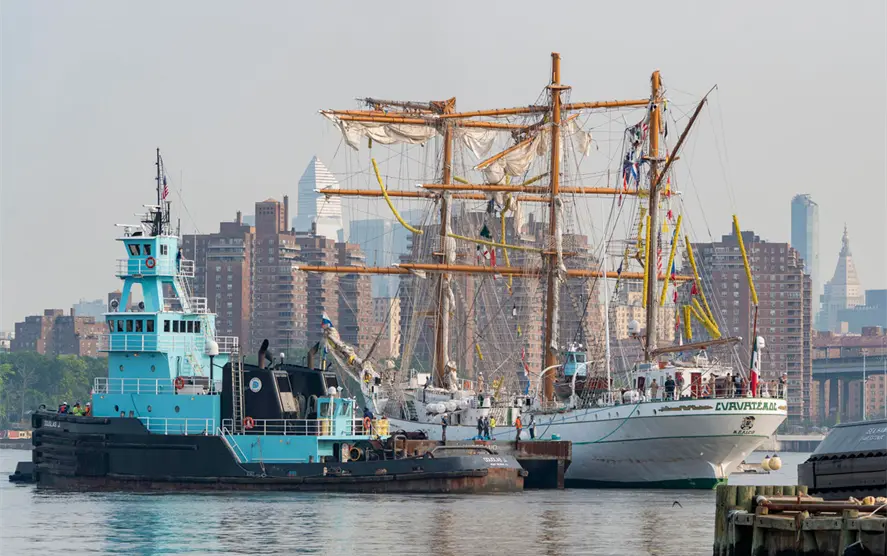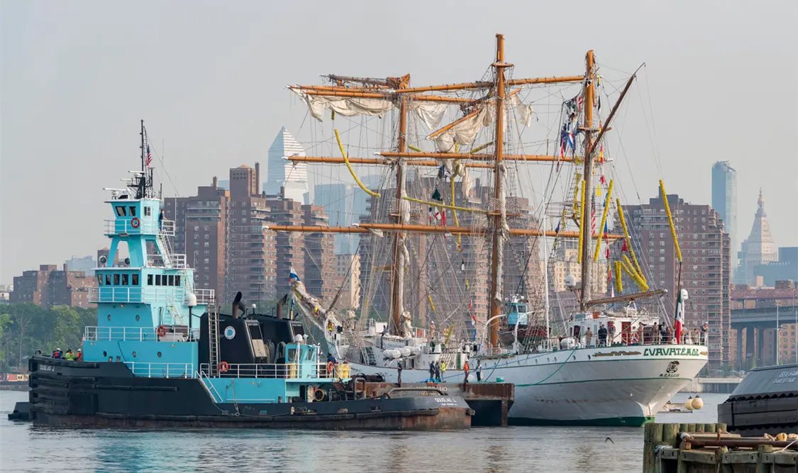 La Secretaría de Marina informó que ayer viernes 6 de junio el Buque Escuela Cuauhtémoc (BE-01) fue trasladado al astillero de GMD de Brooklyn, NY. La acción se llevó a cabo para realizar trabajos técnicos de evaluación y reparación, como parte del proceso posterior al incidente ocurrido el 17 de mayo pasado, donde fallecieron dos cadetes y 19 más resultaron heridos, cuando la nave marítima chocó con el puente de Brooklyn en Nueva York, Estados Unidos.