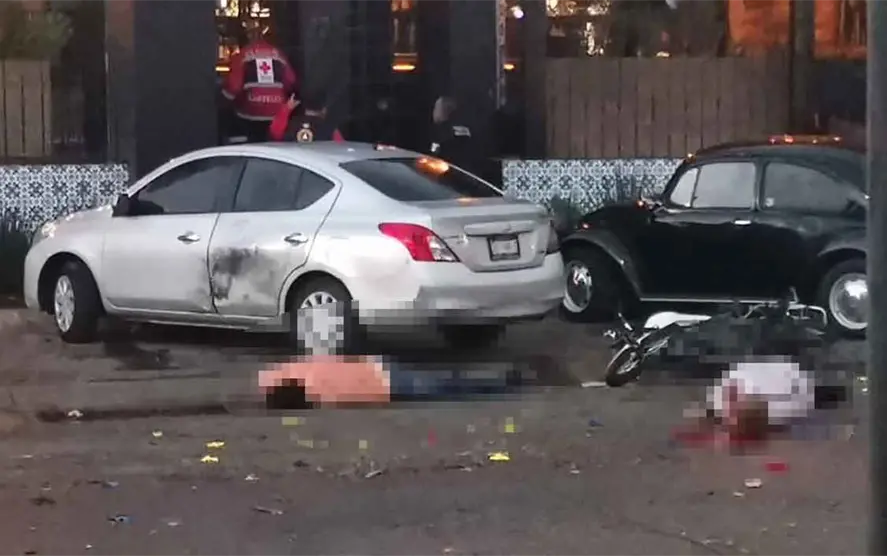 Quien graba es un automovilista y conforme avanza, se logra ver a un hombre vestido de negro tendido en el piso; metros adelante se encontraban restos de una moto y los cuerpos de los socios del restaurante Barra 1604. Uno de los empleados se acerca a los cuerpos y se lleva las manos a la cabeza por la impresión del hecho.