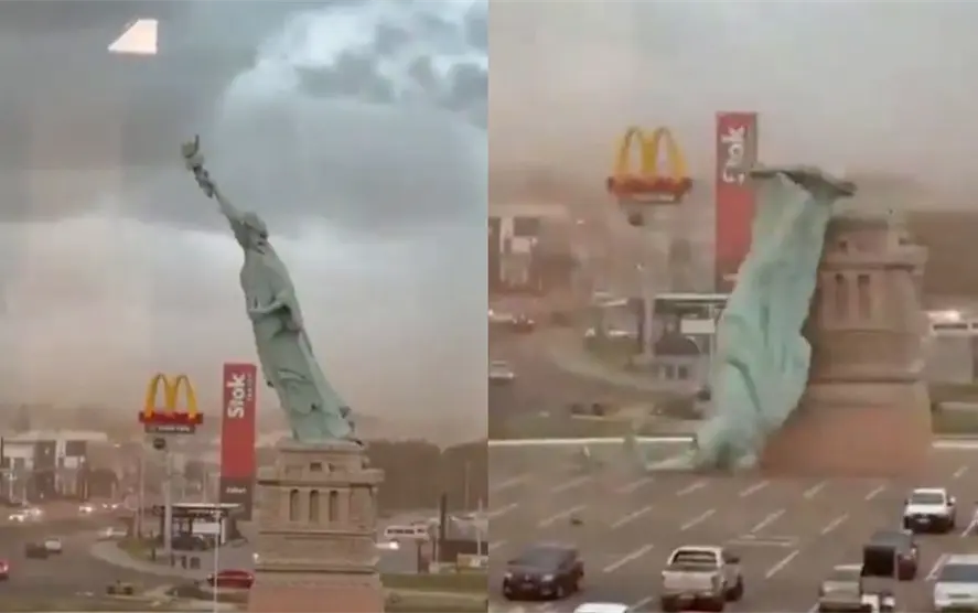 Un fuerte vendaval que azotó la ciudad brasileña de Guaíba, en la región metropolitana de Porto Alegre, el lunes por la tarde, derribó una réplica de la Estatua de la Libertad instalada en una tienda Havan. Según el alcalde Marcelo Maranata (PSDB), la ciudad fue azotada por fuertes ráfagas de viento que alcanzaron los 80 km/h.