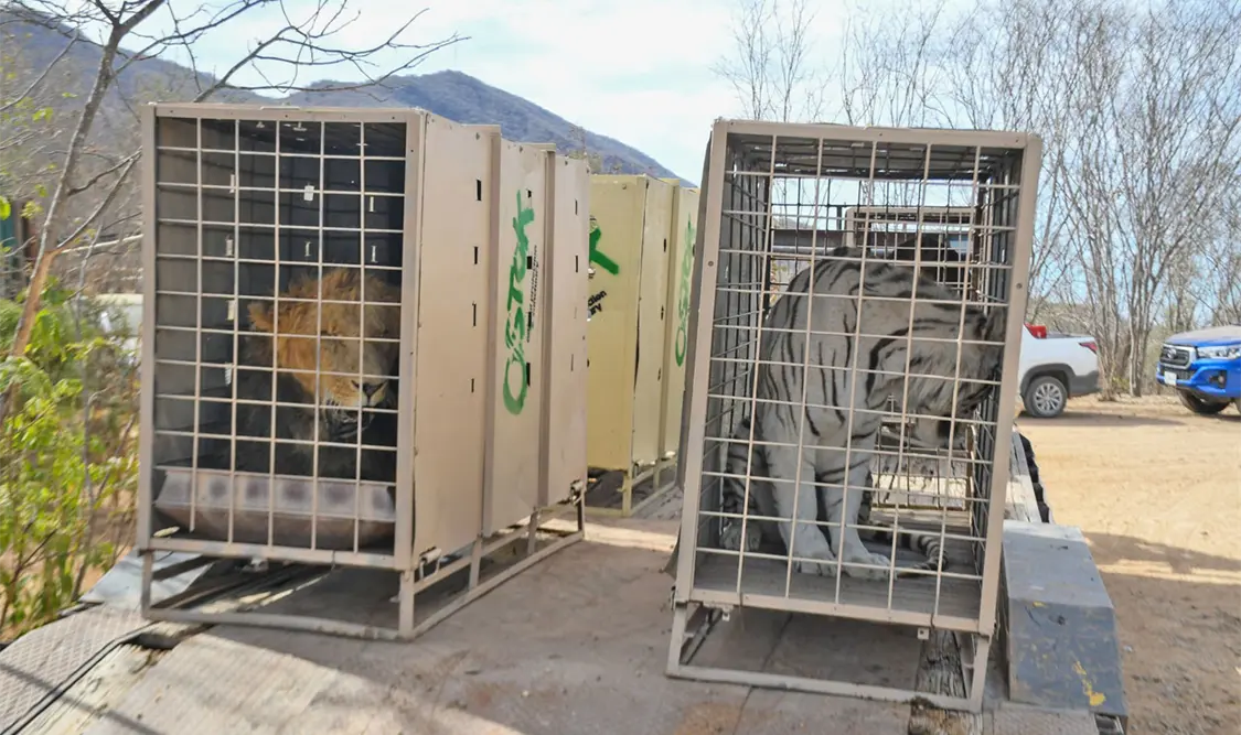 Este martes, elefantes, leones africanos, tigres de bengala, cocodrilos, hipopótamos, ciervos, primates, delfines y aves, viajarán en caravana rumbo a Bioparc El Encanto, en Mazatlán, que será su nuevo hogar tras el cierre definitivo del albergue más grande de resguardo de fauna silvestre en México, a causa de los enfrentamientos armados, bloqueos, amenazas y el miedo generalizado de la población por la escalada de violencia en la entidad.