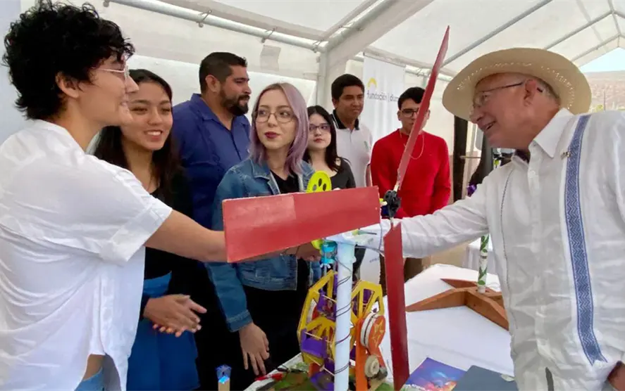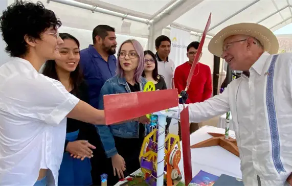 El embajador Salazar conoció al equipo de jóvenes ganadores y ganadoras del reto KidWind Challenge México, programa que busca involucrar a niños y jóvenes en la ciencia, tecnología, ingeniería y matemáticas desde la perspectiva de las energías renovables.