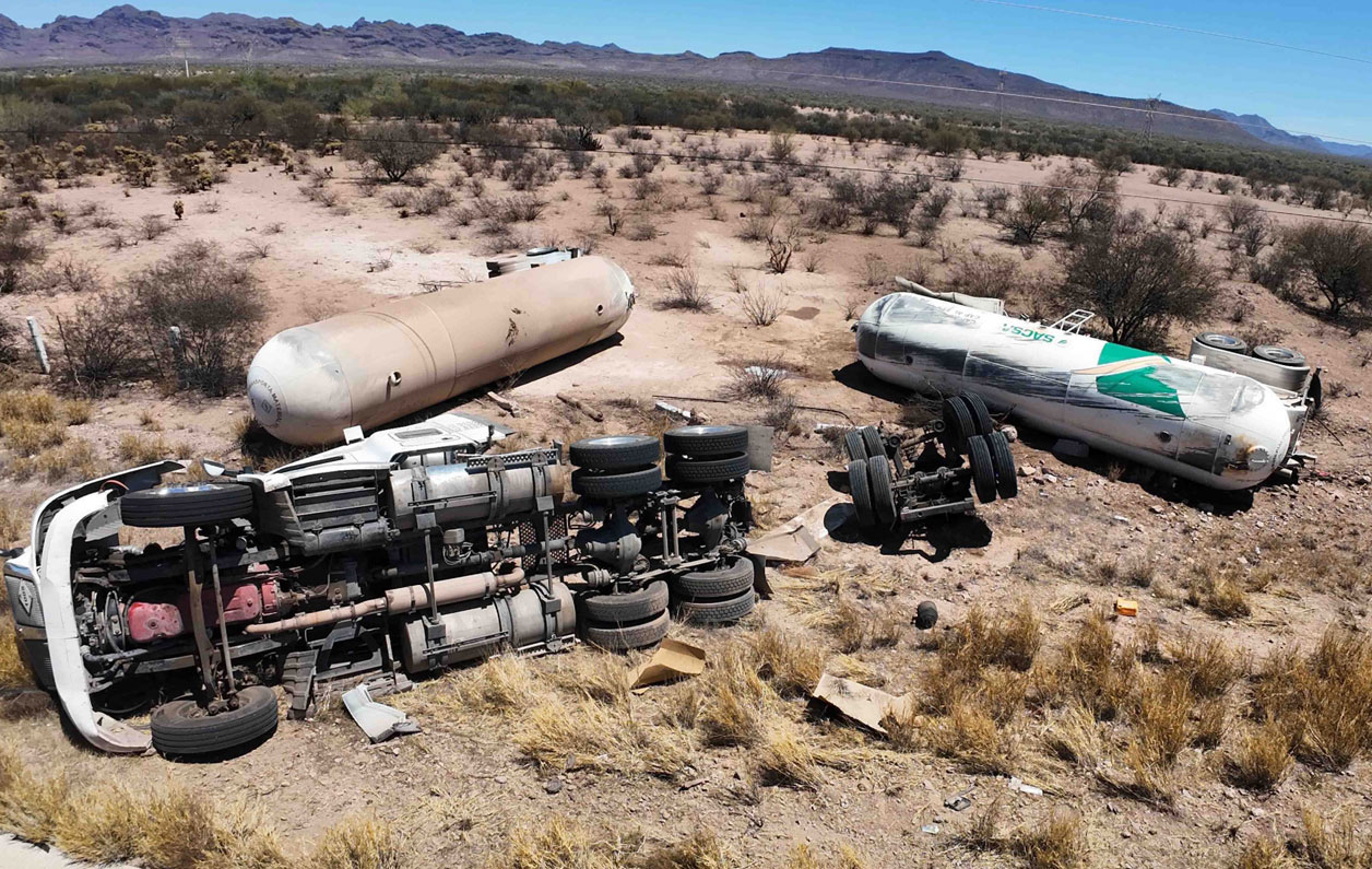 La volcadura de una pipa cisterna que transportaba amoniaco provocó la movilización de autoridades de los tres niveles de gobierno la mañana de este sábado en la carretera Guaymas-Hermosillo, con un saldo de 27 personas intoxicadas, informaron autoridades municipales.