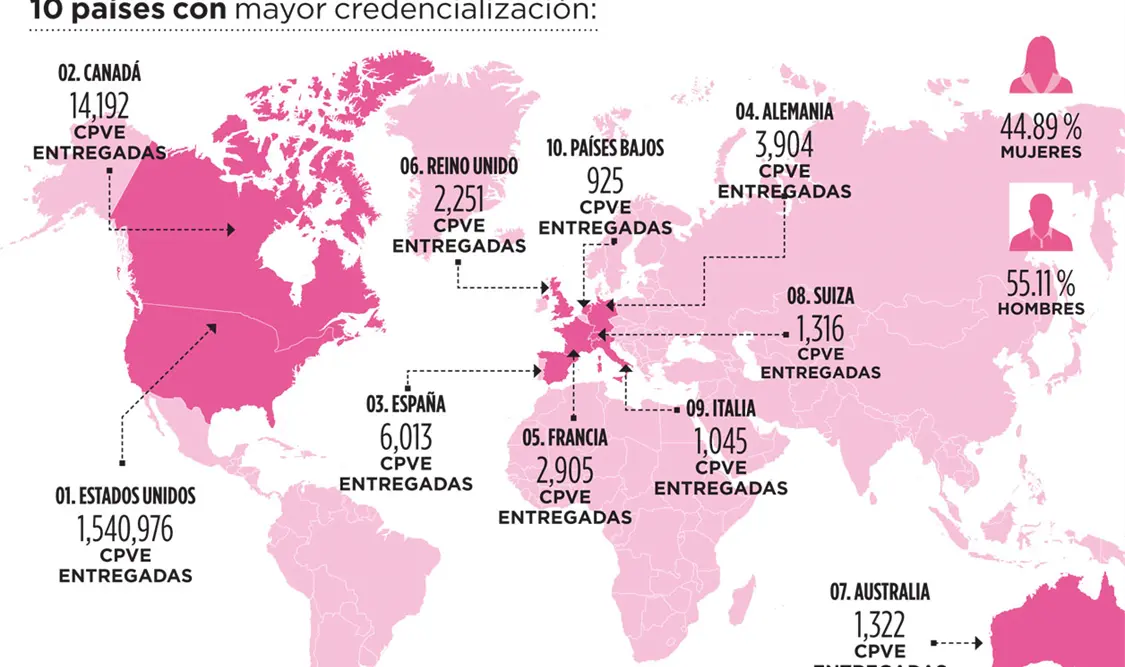 La tramitación de credencial este año se hizo en más de 10 países y consulados, logrando el Instituto Nacional Electoral (INE) entregar un millón 585 mil 703 credenciales, con lo cual podrán elegir a quien estará en la presidencia de la República, de los cuales el 56 % son hombres.