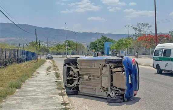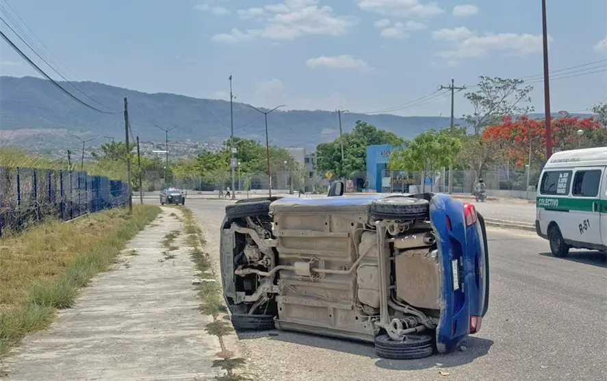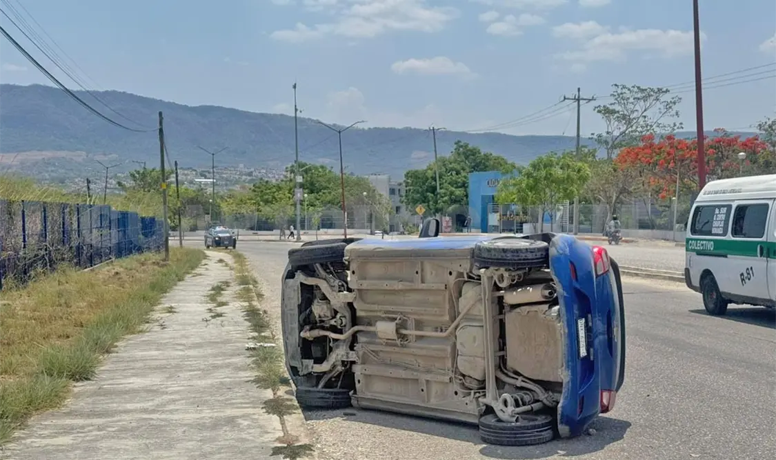 Una persona resultó con múltiples lesiones en las extremidades luego de volcar a bordo de su vehículo sobre la carretera Emiliano Zapata, frente a la Ciudad Universitaria de la Unach en Tuxtla Gutiérrez.