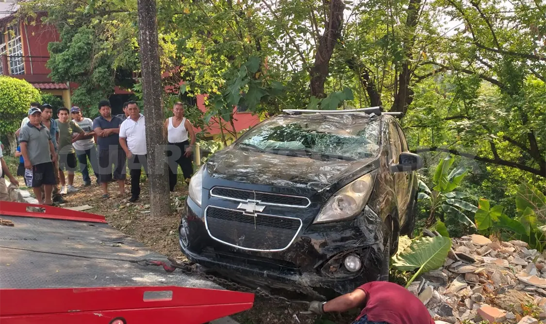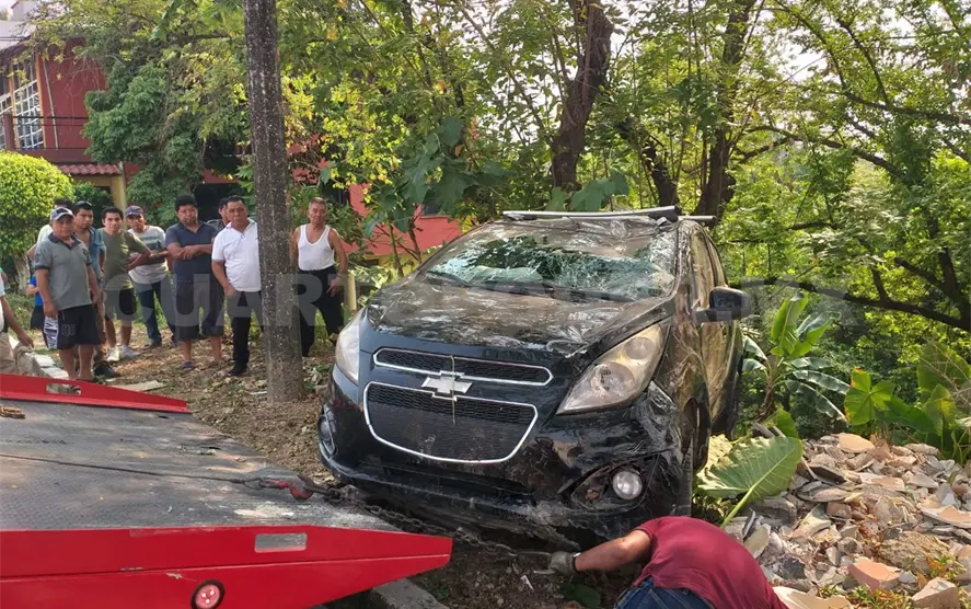 En el fondo el vehículo colisionó contra un árbol y quedó atorado a pocos metros de una vivienda, cuyos habitantes señalaron que escucharon el estruendo de la caída y se asustaron, por lo que salieron a ver qué es lo que había pasado y dieron parte a las autoridades.