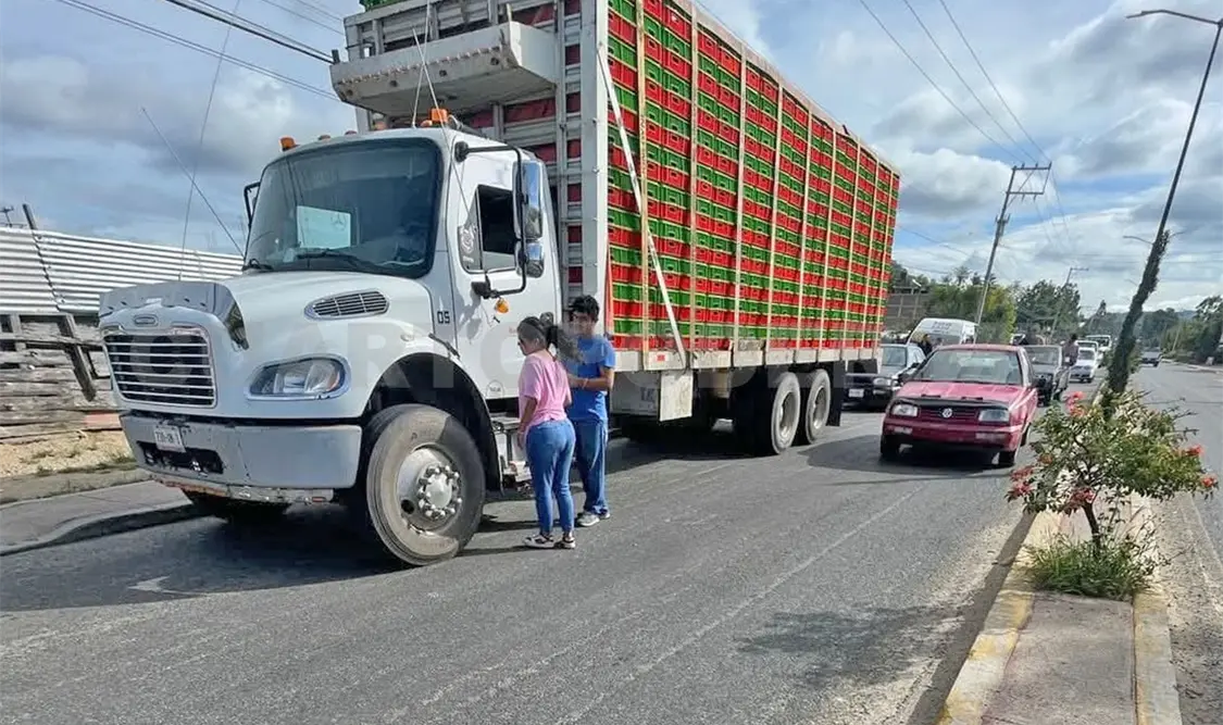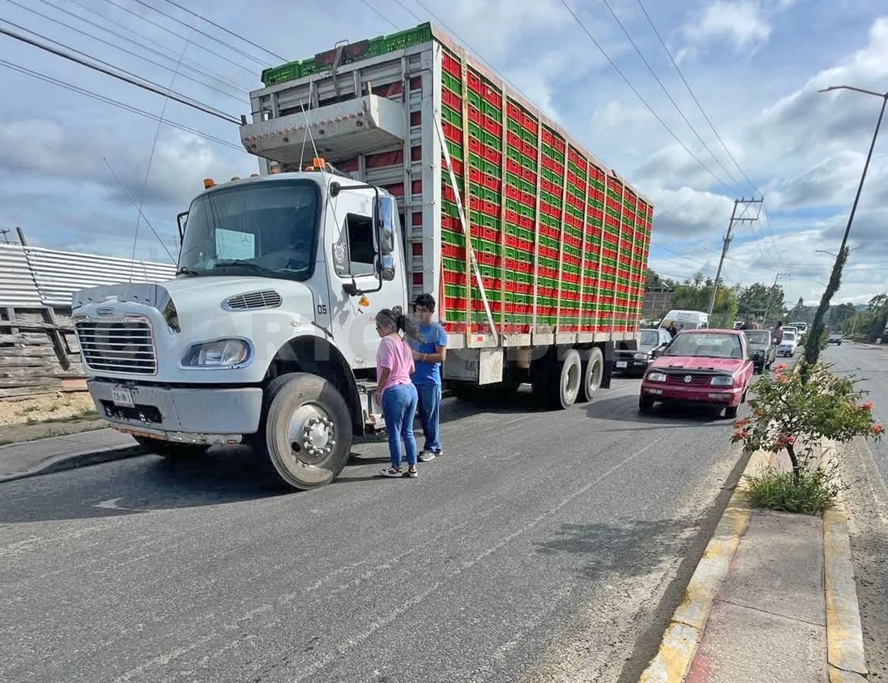 De acuerdo con testigos, todo comenzó cuando el conductor de un Volkswagen Golf de color azul no logró frenar a tiempo y terminó impactándose contra un camión Freightliner, propiedad de la empresa avícola Bachoco.