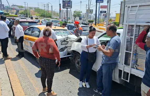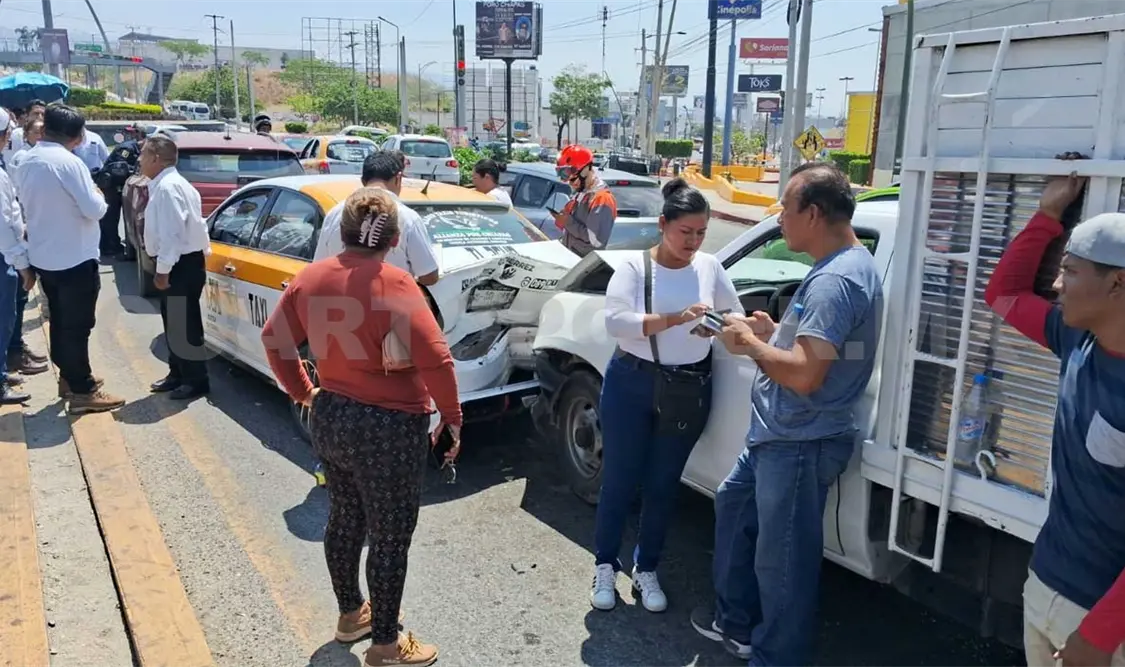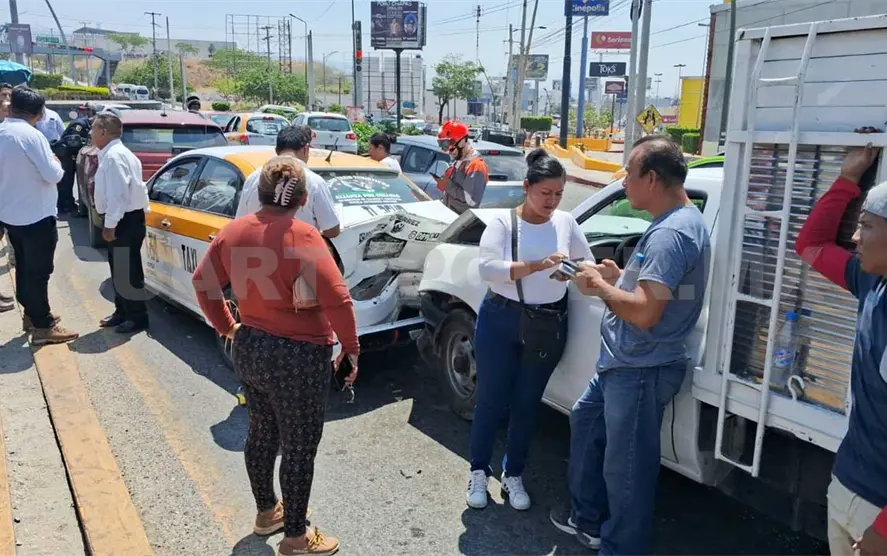 El hecho fue registrado alrededor de las 11:04 horas cuando al menos tres unidades, entre ellos, un transporte público en modalidad de taxi con número económico 2640, sobre el sentido de poniente a oriente colisionaron debido a la falta de precaución y por no guardar la distancia necesaria.