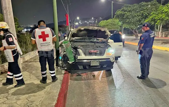 Y por último la unidad motriz de la marca General Motors Company (GMC) detuvo su marcha, tras impactarse contra un alumbrado público.