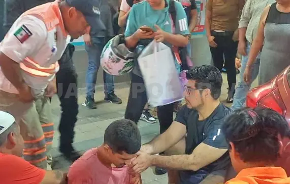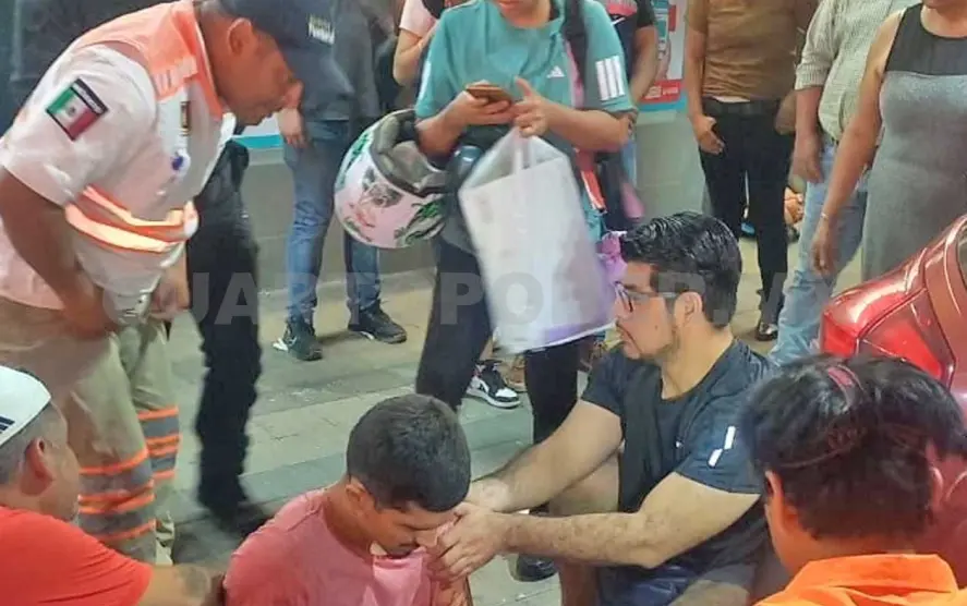 De inmediato, agentes de la Policía Municipal y Estatal se presentaron al sitio, localizando a un hombre tendido sobre el pavimento, visiblemente herido y con manchas hemáticas en la ropa.