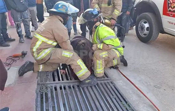 Elementos del Cuerpo de Bomberos rescataron a una adolescente que quedó atrapada de una pierna en la rejilla de una alcantarilla, en una colonia de la zona sur de San Cristóbal de Las Casas durante la mañana de ayer.
