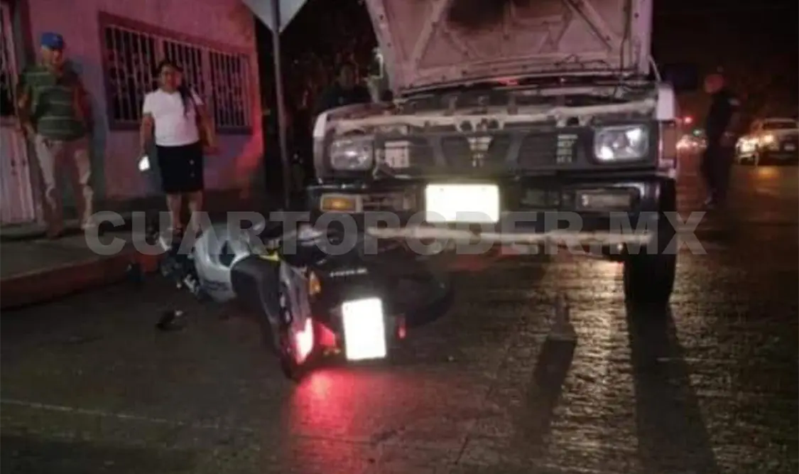 Eran las 20:40 horas cuando se registró el accidente de tránsito ya que la pick up transitaba de oriente a poniente sobre la 25.ª Oriente y al llegar a la 5.ª Norte embistió a una Italika de color gris con amarillo en donde viajaban dos personas del sexo masculino.